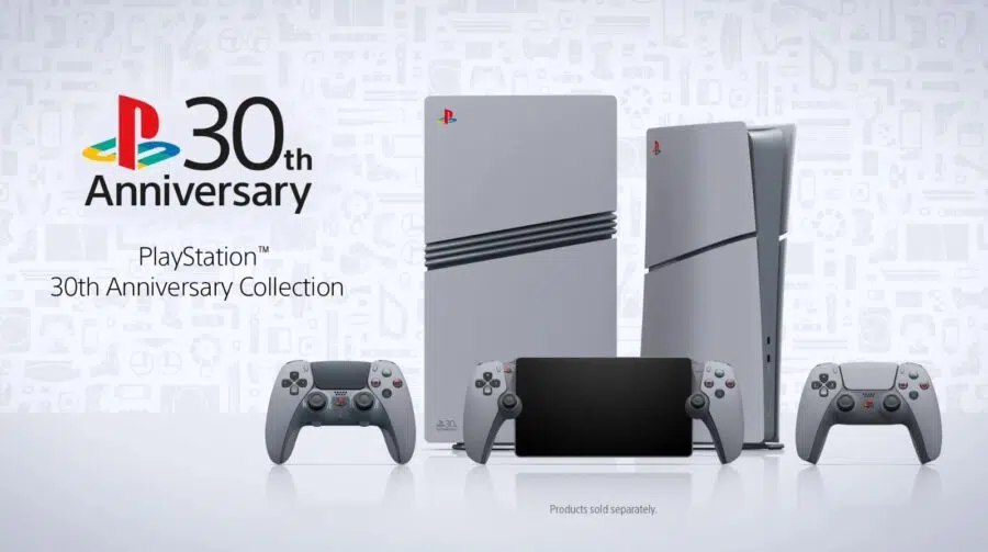 É oficial: a coleção comemorativa de 30 anos do PlayStation já está em pré-venda no Brasil! A edição especial do PS5, DualSense e PS Portal com visual retrô inspirado no primeiro console da Sony pode ser reservada a partir de agora.