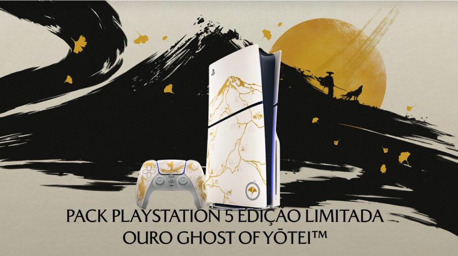 A Sony acaba de liberar a pré-venda de uma coleção exclusiva para os fãs de Ghost of Yōtei. A edição limitada traz um controle DualSense estilizado e tampas personalizadas para o PS5 e PS5 Pro, tudo com detalhes dourados que capturam a beleza das paisagens japonesas e o espírito da jornada de Atsu.