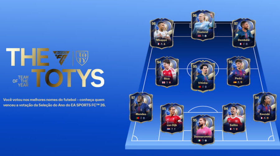 Os itens da Seleção do Ano já começam a chegar ao Ultimate Team do EA SPORTS FC 26. Além dos titulares, o evento também marca o retorno das Menções Honrosas do TOTY e dos ÍDOLOS TOTY, celebrando os jogadores que ficaram por pouco fora da seleção final e lendas históricas do futebol. Os jogadores que acessaram o Ultimate Team entre 12 de dezembro e 12 de janeiro receberão uma melhoria especial de Herói ou Heroína da Seleção Clássica, que será convertida em Herói de Menção Honrosa do TOTY.
